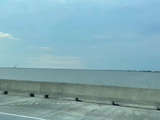The drive to New Orleans was uneventful.  Just the way you like a long drive.  A little rain in Alabama but nothing that slowed us down much.  We gained an hour which was nice.  Nick drove all the way which is the way he likes it.  I did some embroidery on the travel tablecloth.  We listened to several chapters of the book Sweet Dreams which our friend, Patty Shade reads.  An episode of the podcast “Hidden Brain.”  All in all, an enjoyable travel day.